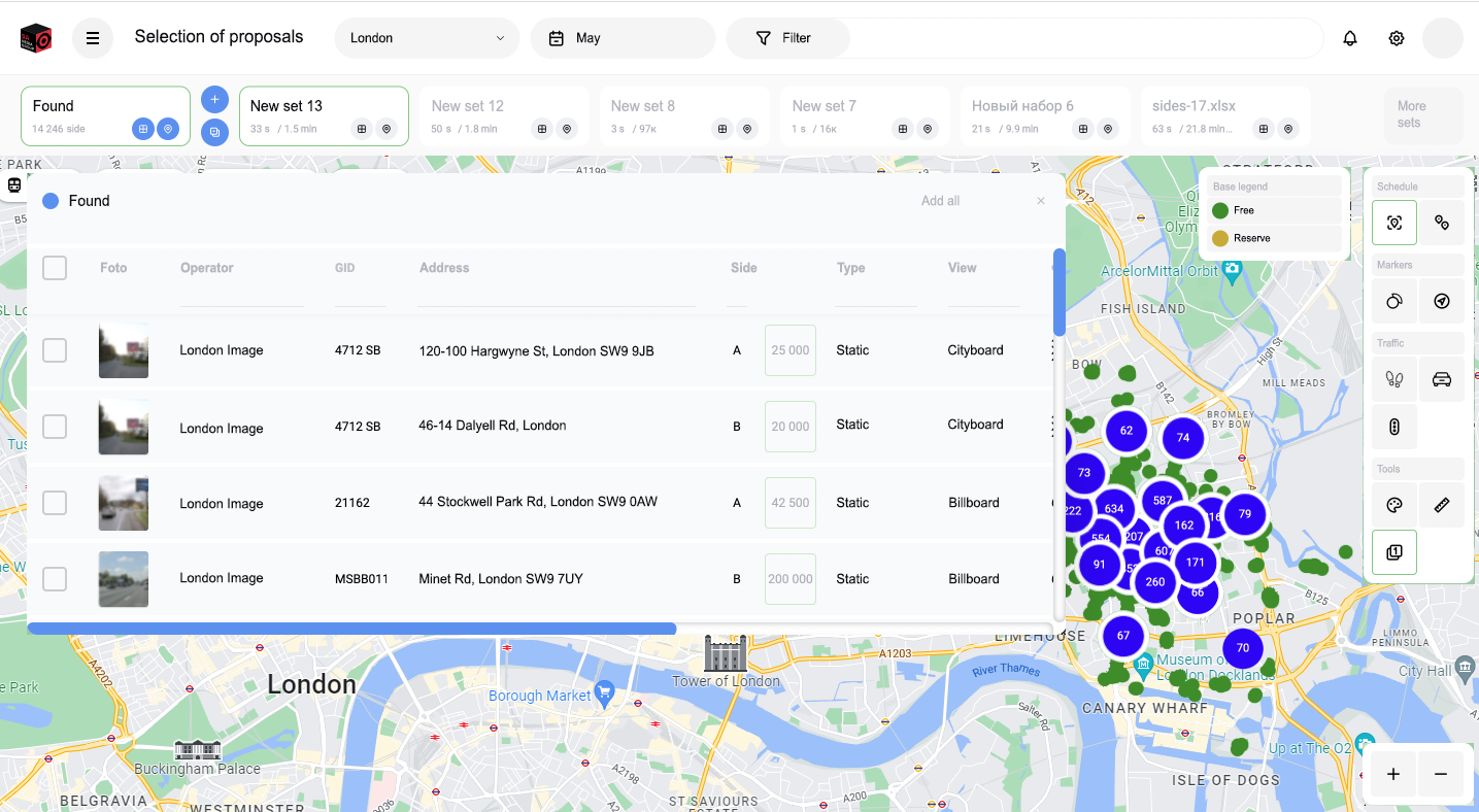 Planning, managing and control for outdoor advertising campaigns in one WEB interface that replaces all existing tools